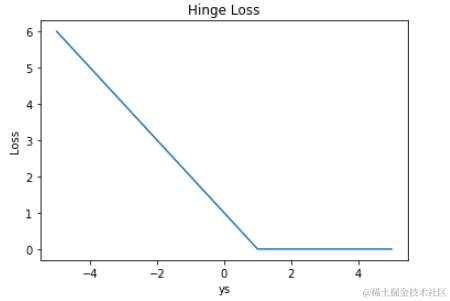 Hinge Loss 的形状就像一本要合上的书,故称为合页损失。显然,只有当 ys < 1 时,Loss 才大于零;对于 ys > 1 的情况,Loss 始终为零。
