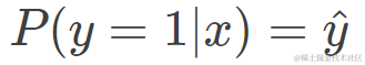 我们可以这么来看,当真实样本标签 y = 1 时,上面式子第二项就为 1,概率等式转化为: