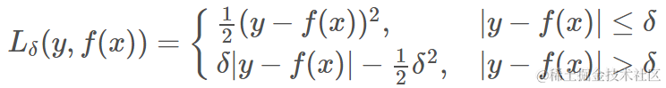 既然 MSE 和 MAE 各有优点和缺点,那么有没有一种激活函数能同时消除二者的缺点,集合二者的优点呢?答案是有的。Huber Loss 就具备这样的优点,其公式如下: