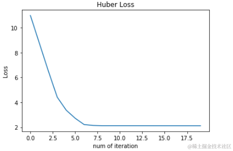 对比发现,MSE 的 Loss 下降得最快,MAE 的 Loss 下降得最慢,Huber Loss 下降速度介于 MSE 和 MAE 之间。也就是说,Huber Loss 弥补了此例中 MAE 的 Loss 下降速度慢的问题,使得优化速度接近 MSE。