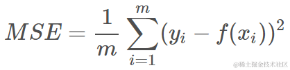 均方误差指的就是模型预测值 f(x) 与样本真实值 y 之间距离平方的平均值。其公式如下所示: