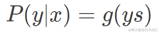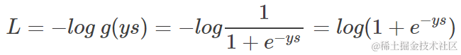 下面对上式做个简单的推导,我们在 0 小节说过,ys 的符号反映了预测的准确性。除此之外,ys 的数值大小也反映了预测的置信程度。所以,从概率角度来看,预测类别的概率可以写成: