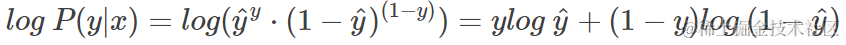 我们希望的是概率 P(y|x) 越大越好。首先,我们对 P(y|x) 引入 log 函数,因为 log 运算并不会影响函数本身的单调性。则有:\