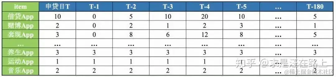 - 设备App数据:用户手机上安装的借贷类、生活类、运动类、音乐类等App的数量。