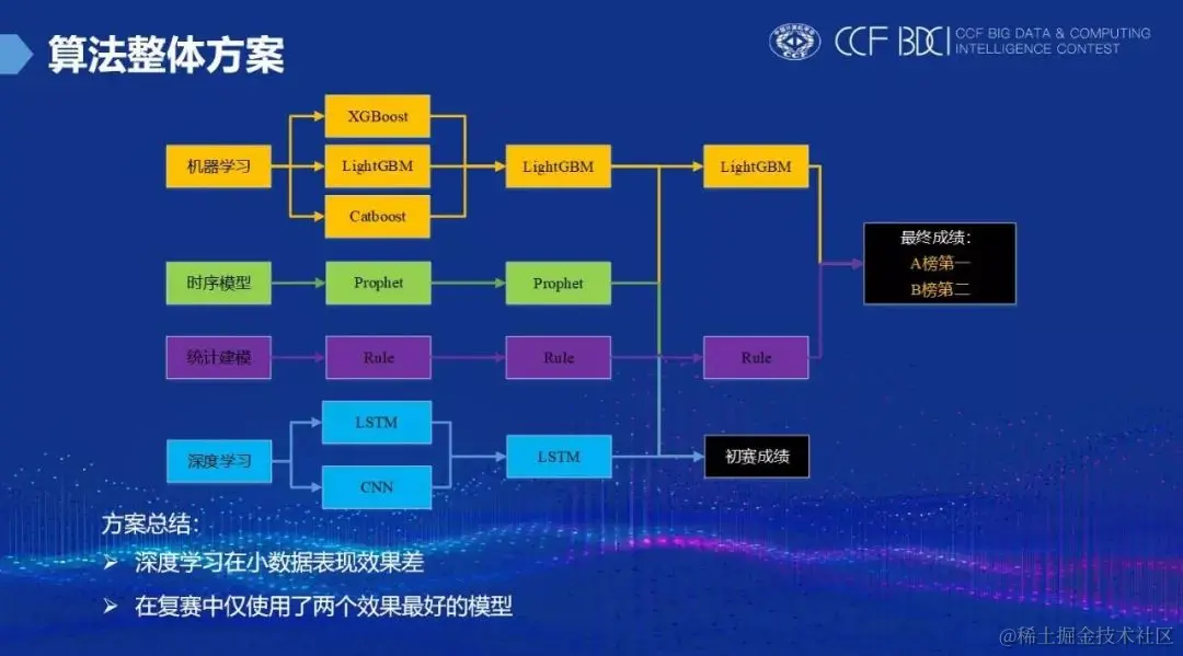 本来复赛B榜是rank 4。由于有一个队伍由于使用小号被取消资格,一个队伍放弃复现,决赛逆袭一个队伍,最终拿到了冠军。说实话,运气非常好。