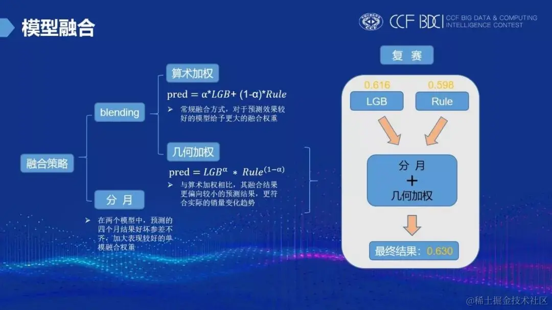 由此可见,规则带有相当多的超参数。据我了解不少团队复赛时规则血崩,这也是时序题里面规则的泛性问题。我们初赛时规则可以达到0.633,是一个绝对的主力,复赛提交次数太少,最终规则也只有0.598,只能以lgb为主,规则为辅。