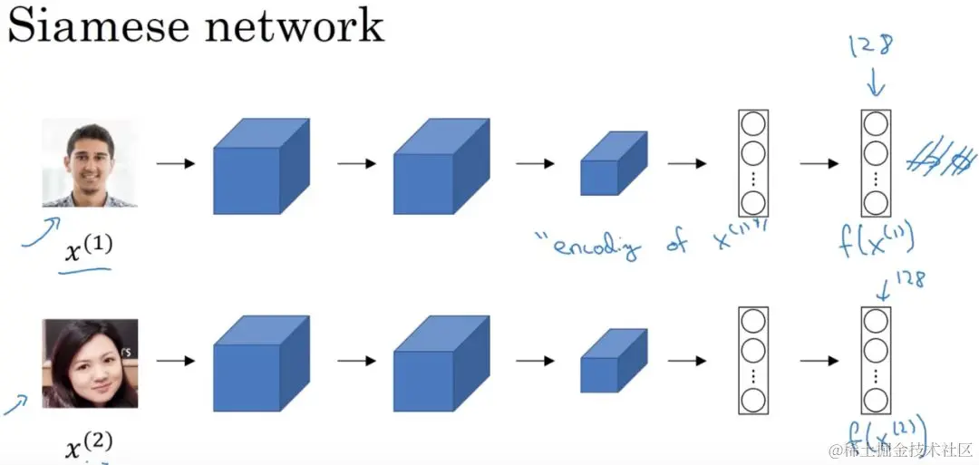 基本上,回答这个问题,你应该先描述一下 One Shot learning 来进行人脸识别的方法一般性方法。它可以简单地理解为将每个人脸转换成一个向量,而新的人脸识别是寻找与输入人脸最接近(最相似)的向量。通常,人们会使用 triplet loss 损失函数的深度学习模型来实现这一点。