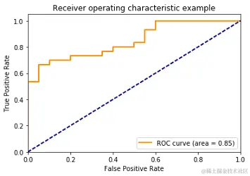 理想的 ROC 曲线是最接近左上角的橙色线。真阳性比较高,假阳性比较低。\