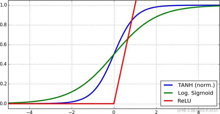 这些函数是连续函数,也就是说,如果输入的变量很小且可微(在其定义域内的每一点都有导数),那么输出就会有一个小的变化。当然,如上所述,导数的计算是非常重要的,它是决定我们的神经元能否被训练的决定性因素。提几个常用的激活函数,如 Sigmoid, Softmax, ReLU。