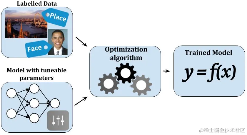 回到机器学习的本质上来,关于机器学习我们需要一个数据集,没有数据我们如何学习?一旦数据可用,机器需要在数据堆中找到输入和输出的联系。\
