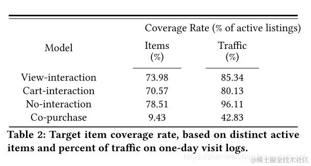 另外普通的item2vec在几种方法里具有最低的hit rate,这也说明了学习【物品-交互】pair的embedding相比于单纯学习物品的embedding能够在召回结果中包含更多的最终被购买的物品。