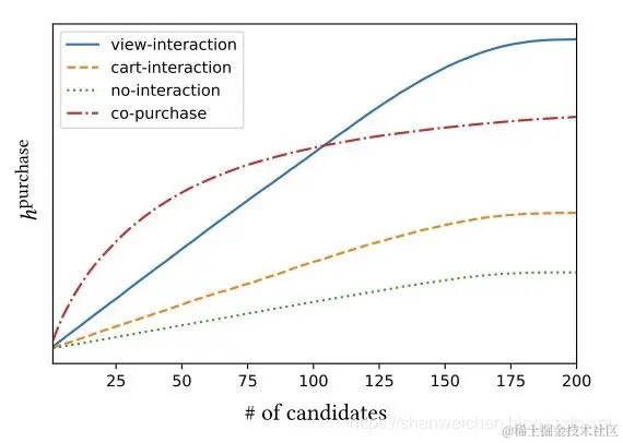 横坐标是召回的结果数量,纵坐标是购买行为的平均hit rate。