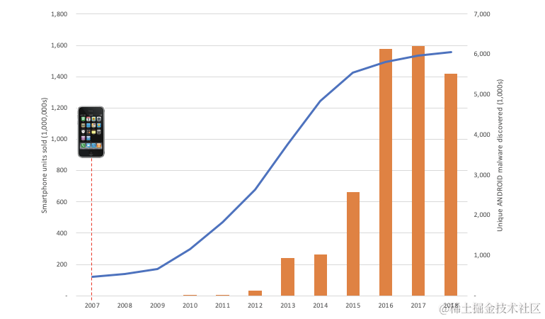 紧随其后的是手机恶意软件的爆炸式增长:\