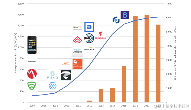 随着手机恶意软件的快速增长,安全玩家也出现了类似的爆炸式增长: