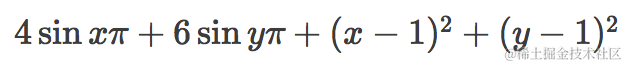 return (4 * np.sin(np.pi * x) + 6 * np.sin(np.pi * y)) + (x- 1)**2 + (y- 1)**2