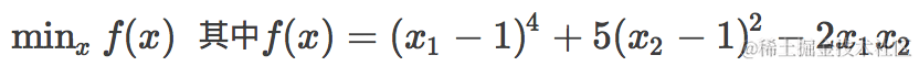 f_sym = (x1-1)**4 + 5 * (x2-1)**2- 2*x1*x2