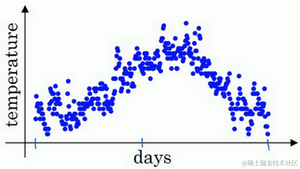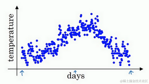 这里是1月1号,年中接近夏季的时候,随后就是年末的数据,看起来有些杂乱,如果要计算趋势的话,也就是温度的局部平均值,或者说移动平均值。