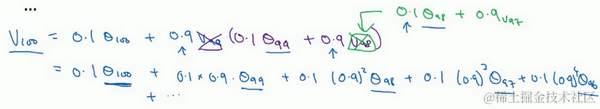 结果是,稍后我们详细讲解,不过所有的这些系数(),相加起来为1或者逼近1,我们称之为偏差修正,下个视频会涉及。