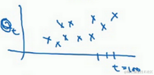所以这是一个加和并平均,100号数据,也就是当日温度。我们分析 的组成,也就是在一年第100天计算的数据,但是这个是总和,包括100号数据,99号数据,97号数据等等。画图的一个办法是,假设我们有一些日期的温度,所以这是数据,这是 ,所以100号数据有个数值,99号数据有个数值,98号数据等等, 为100,99,98等等,这就是数日的温度数值。