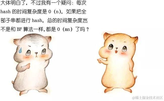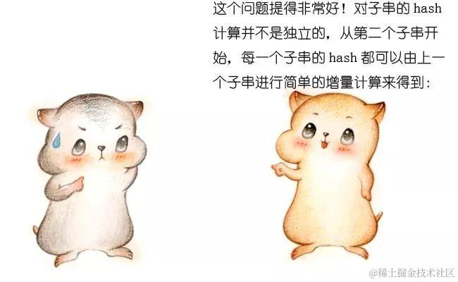 //如果匹配,则进行精确比较;如果不匹配,计算主串中相邻子串的hash值。