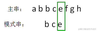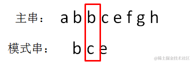 主串的第三位字符是b,模式串的第三位字符也是c,两者并不匹配。