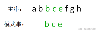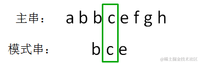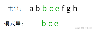 由此得到结果,模式串 bce 是主串 abbcefgh 的子串,在主串第一次出现的位置下标是 2: