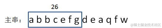 上图中,我已知子串abbcefg的hashcode是26,那么如何计算下一个子串,也就是bbcefgd的hashcode呢?\