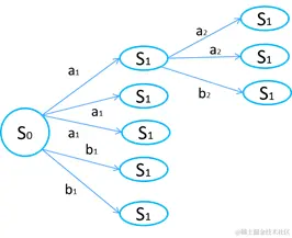 该过程表示从 出发,有决策函数来选择相应的动作 ,然后以概率 到达下一状态 ,这里的 只是表示第 时刻的状态,而 的值属于状态集。