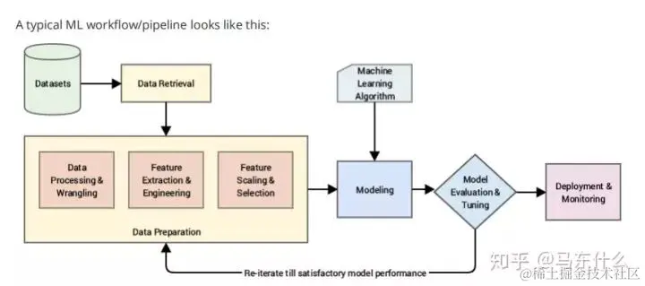可以有许多方法将组成ML工作流的任务划分为各个阶段。但一般来说,基本步骤与上面的图表相似。