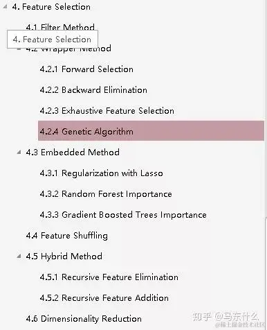 后续没有太多新的内容了,值得一提的是featurega是一个使用deap实现的基于遗传算法的特征选择库,具体效果没有实验过,本质就是把每一个特征当做一个超参数,然后通过类似调参的方式来选择最佳特征组合,具体的后续归并到自动化机器学习的专栏里,遗传算法说起来有太多的知识点要回归了。