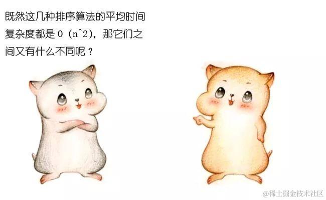 第三梯队的排序算法有什么共同点呢?它们的平均时间复杂度都是O(n^2) 。\
