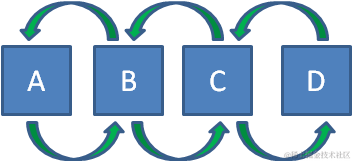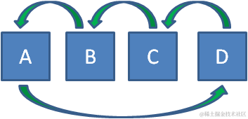 在此基础上,插入排序的性能略高于冒泡排序。为什么这么说呢?因为冒泡排序每两个元素之间的交换是彼此独立的,比如A和B交换,B和C交换,C和D交换: