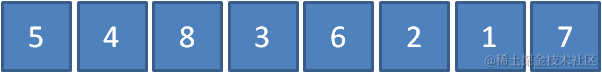 如果原始数组本来已经接近有序,只需要较少的比较交换次数即可完成排序。比如下面这个数组,只有7和8是逆序的: