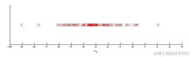 您有一个一维数据集 ,并且希望检测数据集中的异常值。首先绘制数据集,它如下所示: