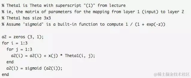 你想计算隐藏层 的激活,一种方法是使用以下Octave代码: