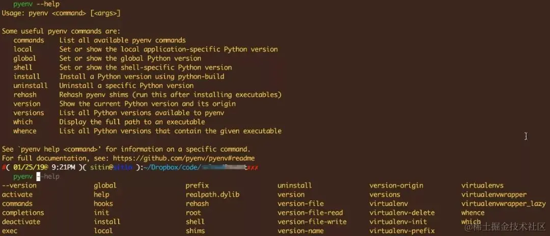 配置好之后,我们可以看到pyenv的shell补全,如下图。\