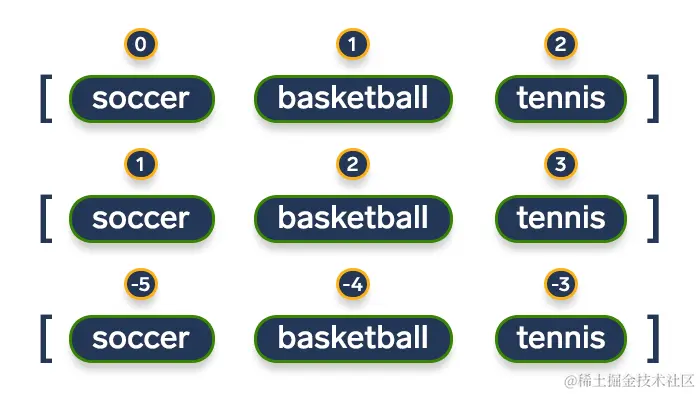 现在,修改上述代码:1.起始索引可以为负;2.省略start=则默认从0索引位置开始。