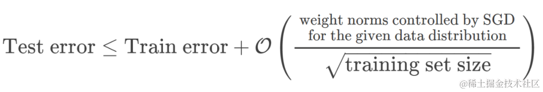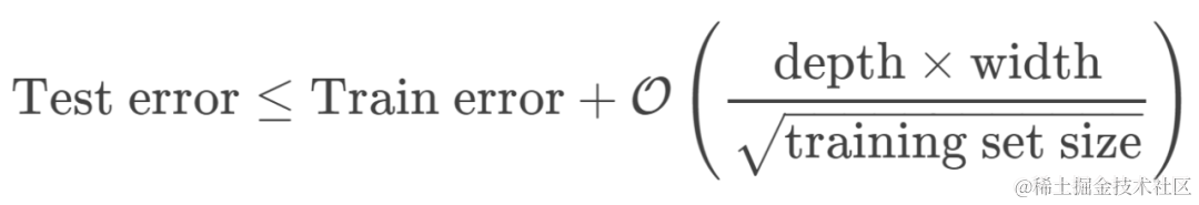 我们认为,测试误差不能超过训练误差再加上某个边界。这个边界随着训练集的增加而减少,随着模型参数量(depth×width)的增加而增加。