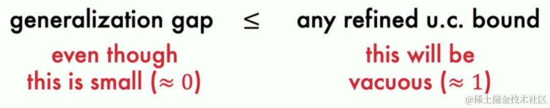 正如上式所示,即使再精炼,一致性收敛边界可能推导出约等于 1,但真实的泛化差距可能接近于 0。这样的结果是非常虚的,它并起不到什么作用。