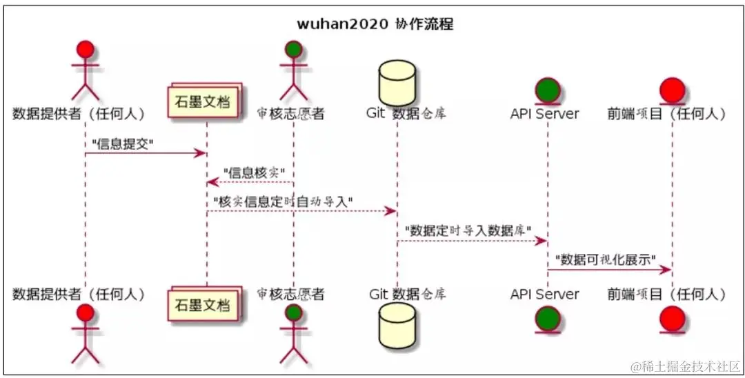 而对于非技术人员来说(信息采集、审核、宣传、协调等),则主要是通过石墨文档来进行信息采集与审核,通过微信来进行日常的沟通交流。也正是因为此,我们逐渐形成了多个小分队,并实行组长责任制。