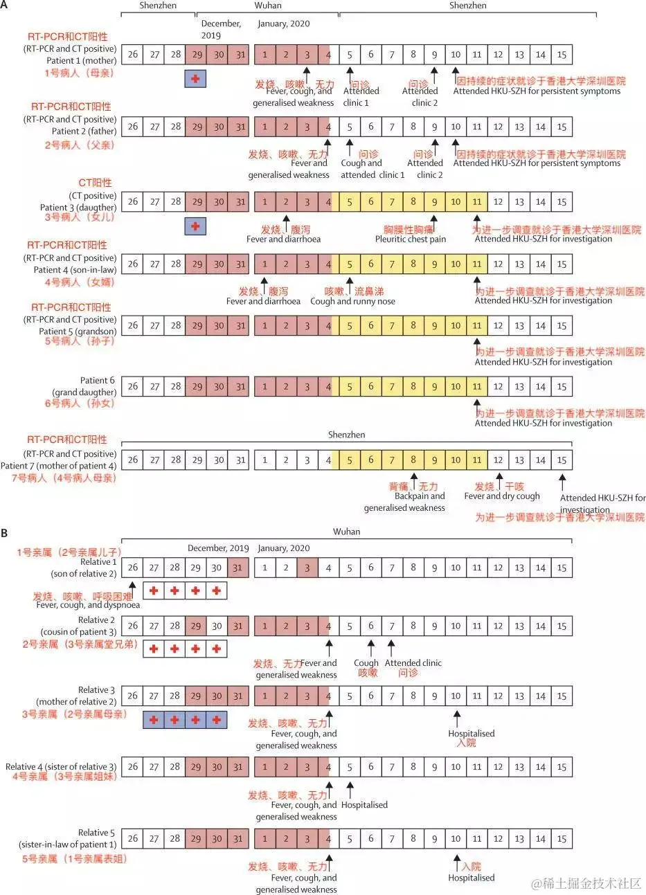 这篇论文也是在2020年1月24日发表于柳叶刀。论文对一个感染肺炎的七口之家进行了详细的医学诊疗和调查溯源。