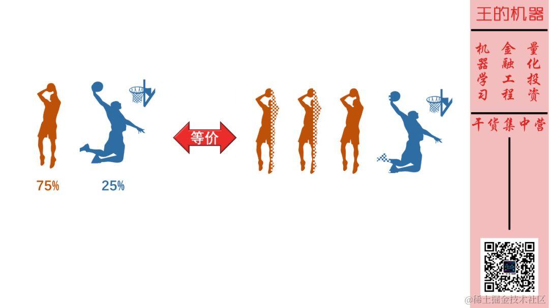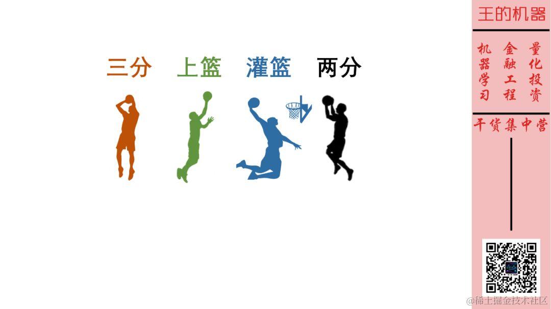 这时我们可以把它等价想象成有四个事件,3 个投篮事件和 1 个灌篮事件。
