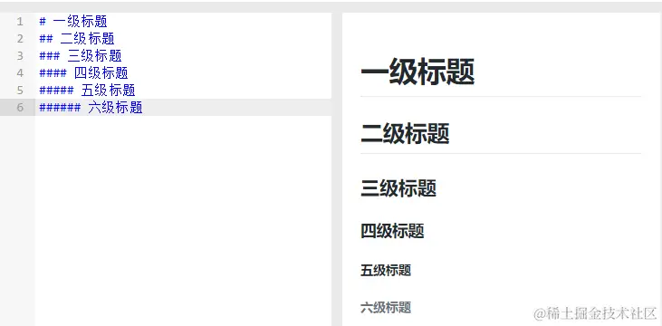 使用#号可表示1-6级标题,一级标题对应一个#号,二级标题对应两个#号,以此类推。