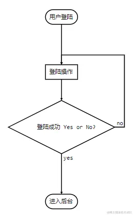 ```flow st=>start: 用户登陆 op=>operation: 登陆操作 cond=>condition: 登陆成功 Yes or No? e=>end: 进入后台 st->op->cond cond(yes)->e cond(no)->op ```标准流程图(横向)