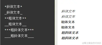 斜体文本:可以在需要标注为斜体文本前及斜体文本结尾,输入一个星号*或者一个下划线_