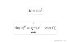 $$包裹TeX或LaTeX格式的数学公式来实现。$$E=mc^2$$ $$\sin(\alpha)^{\theta}=\sum_{i=0}^{n}(x^i + \cos(f))$$多行公式