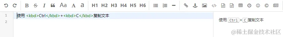 md2all编辑器是无法显示使用<kbd>Ctrl</kbd>+<kbd>C</kbd>复制文本 HTML 元素的,这里大家可以结合mdeditor编辑器平台来实现。使用 <kbd>Ctrl</kbd>+<kbd>C</kbd> 复制文本转义
