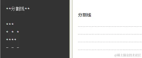 在一行中用三个(以上)的星号、减号、底线来建立一个分隔线,该分隔线行内不能输出任何其他文本,也可以在星号或是减号中间插入空格。