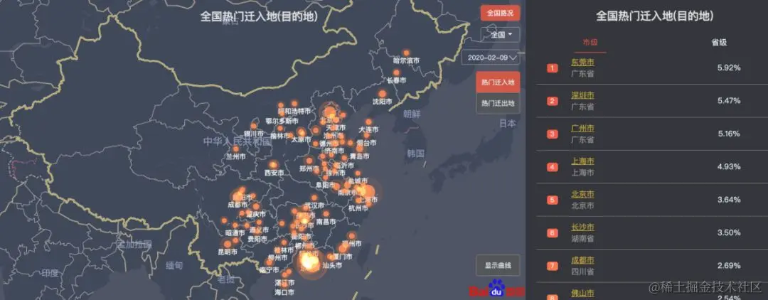 因此,在返工时期,我们通过迁徙大数据来了解一下,哪些城市是近期热门迁入地,疫情传播压力最大?各地又该如何根据大数据,更有效地防范疫情扩散的风险?