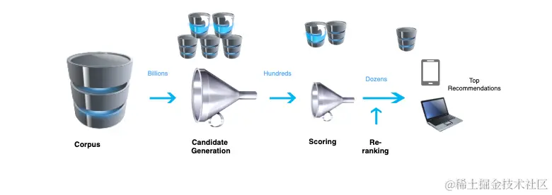 典型的推荐系统 pipeline 包括以下五个阶段:
